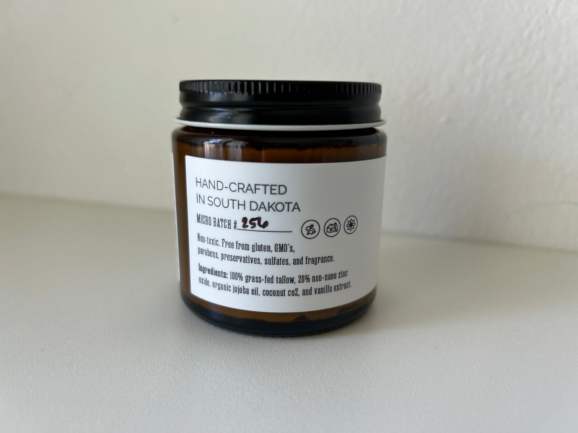 Discover deep hydration with our Whipped Sun Balm, crafted from 100% grass-fed beef tallow and 20% non-nano zinc oxide. This nutrient-packed balm absorbs effortlessly, restoring moisture while promoting skin soothing and repair. Ideal for dry, sensitive skin, it’s free of GMOs, parabens, preservatives, sulfates, gluten, and fragrance. Use it daily to nourish, soothe, and hydrate your skin naturally, especially before extended time outdoors in sunny conditions.